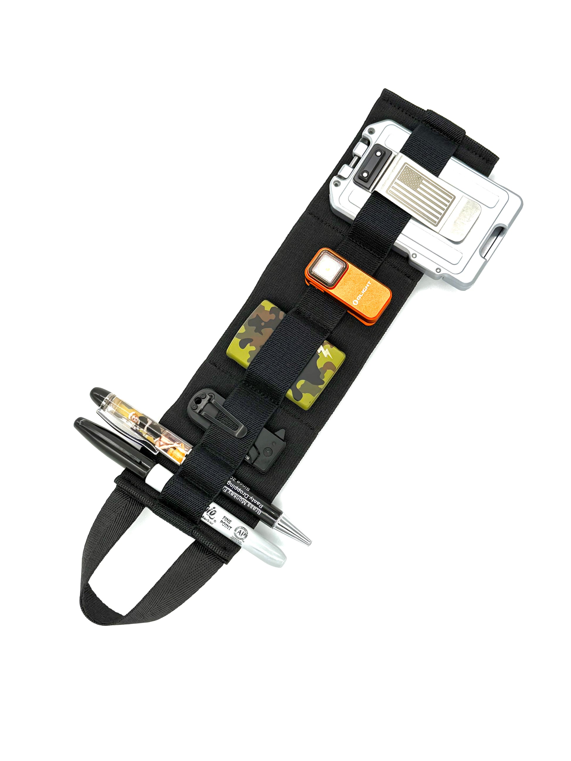 Take your organization game up a level. The JDS Double Stack packs an 11” x 3” dual‑layer elastic array mounted on rugged 3” webbing, giving you serious holding power in a compact footprint. A built‑in pull handle lets you swap it between bags in seconds, while the full hook‑backed panel locks it onto any loop‑lined interior or GWA silencer zone.